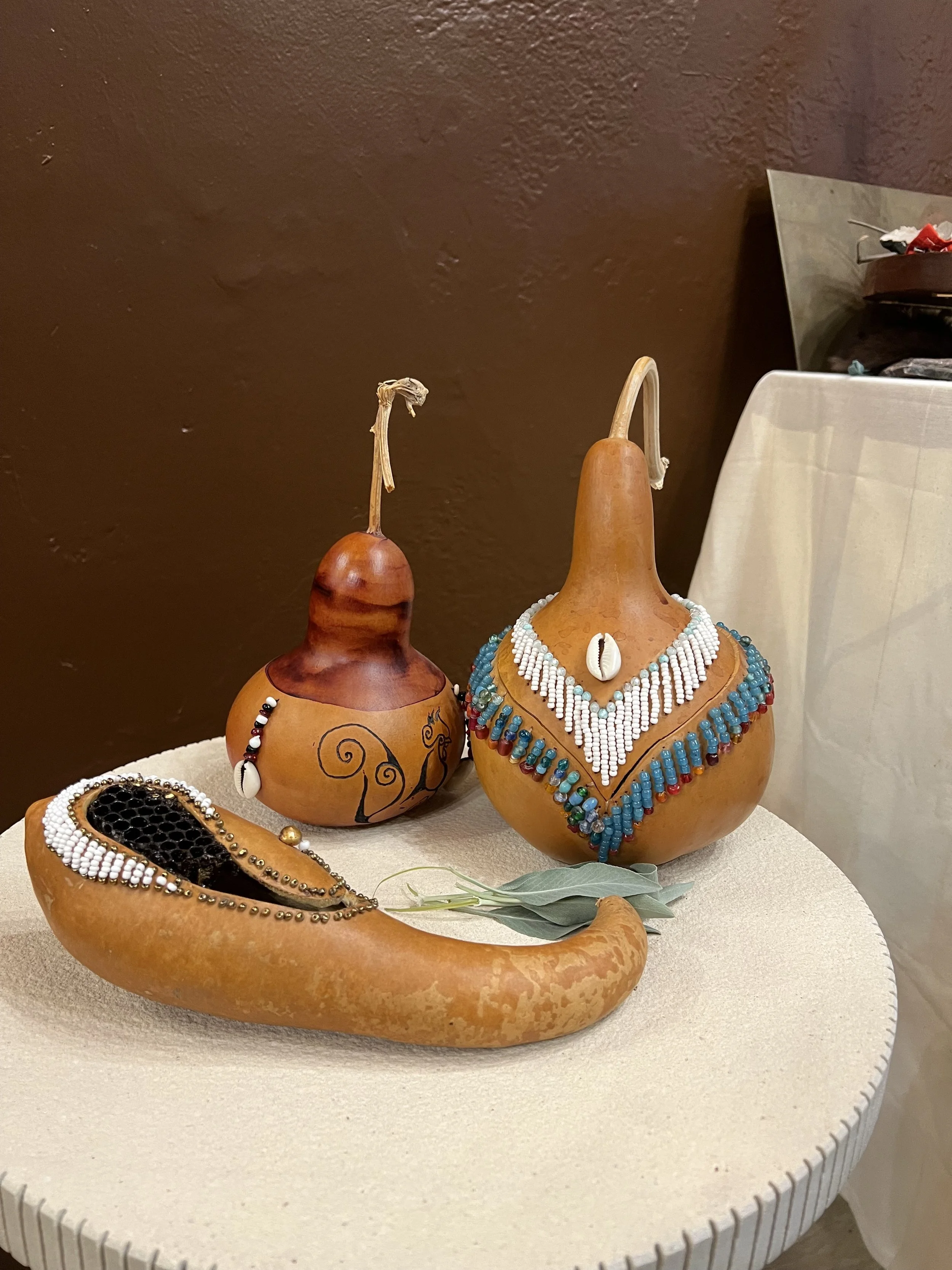 My collection includes adorned gourds and unique altar trays designed for spiritual and ritual purposes. Bring the Spirit of beauty to your Ordinary Things: there's something for every intention.